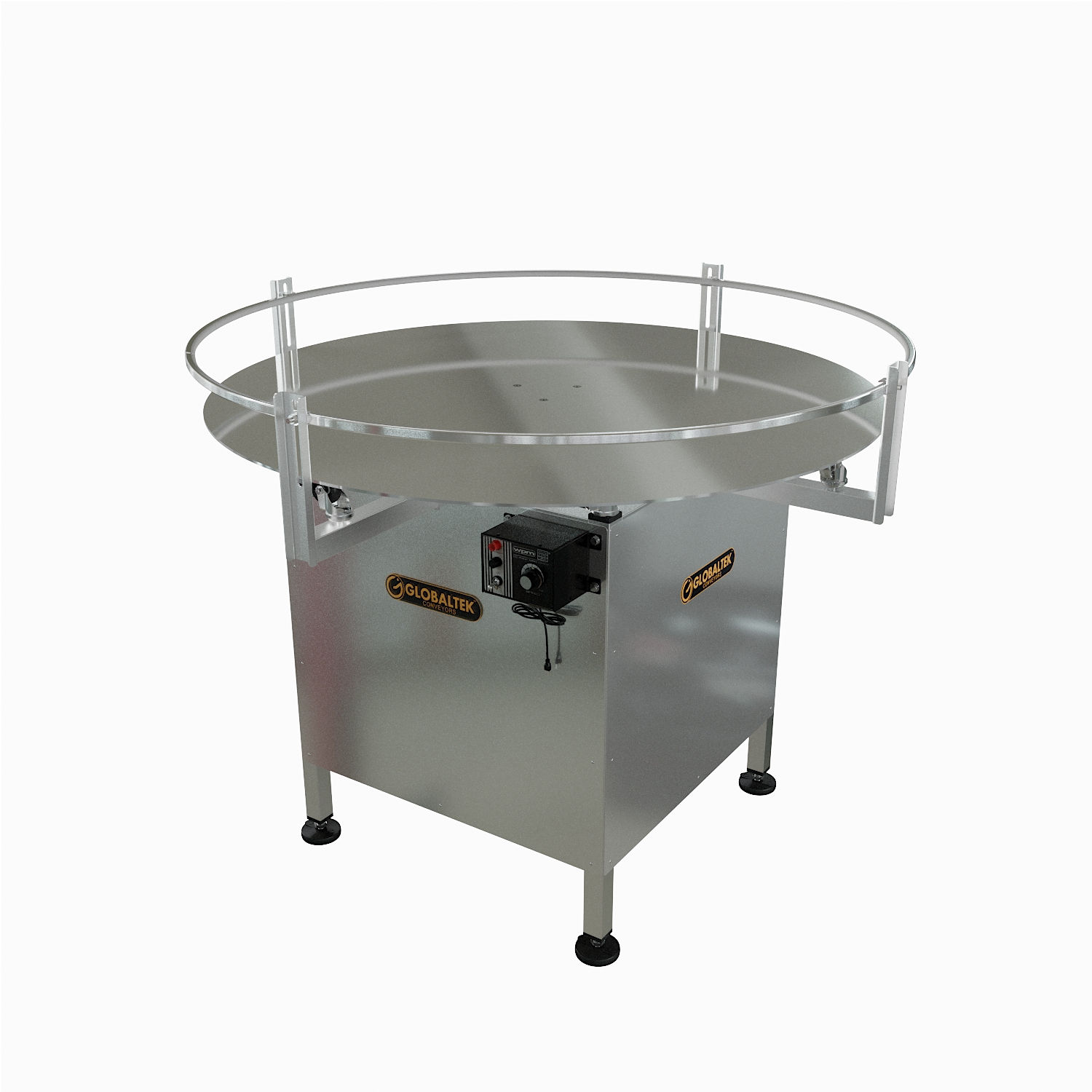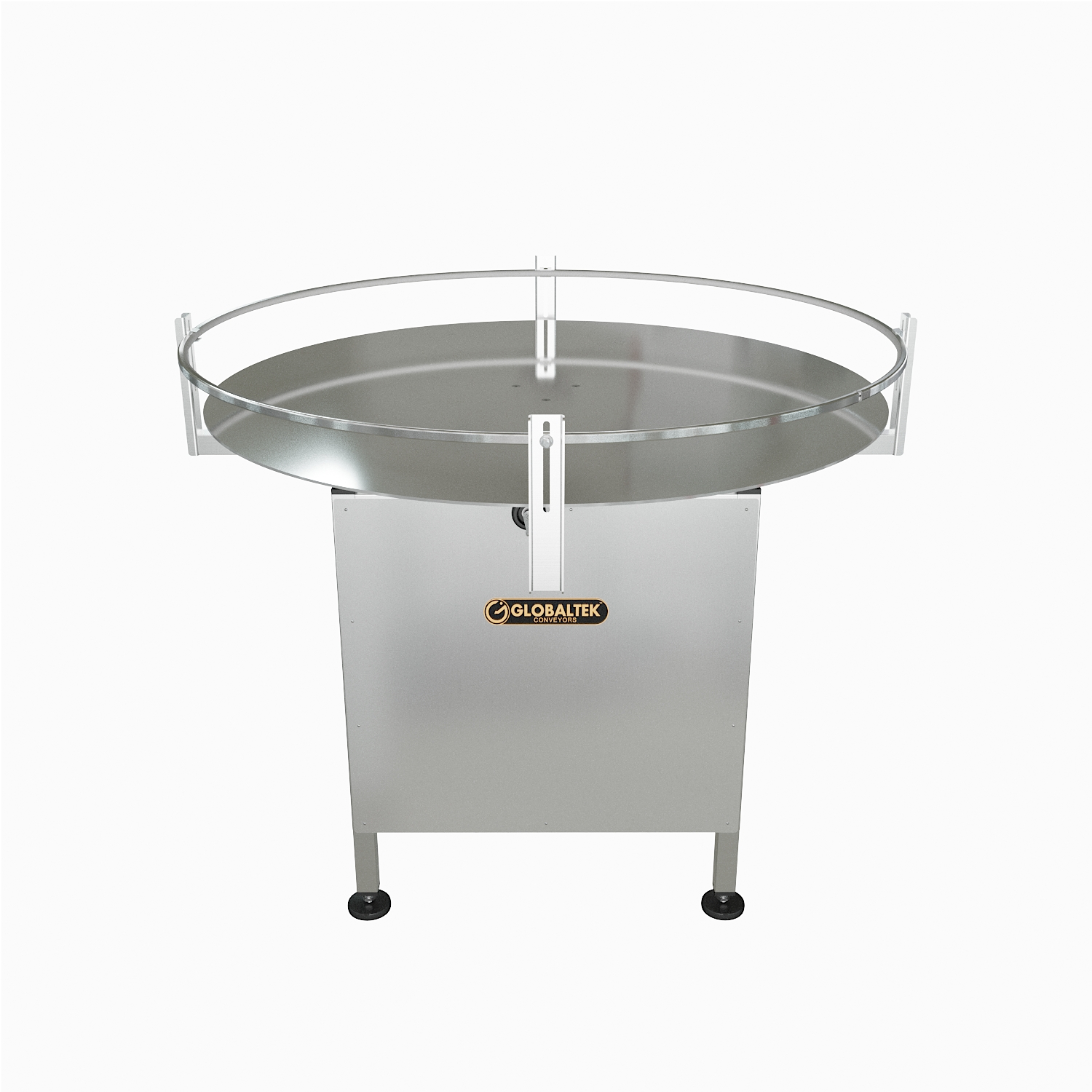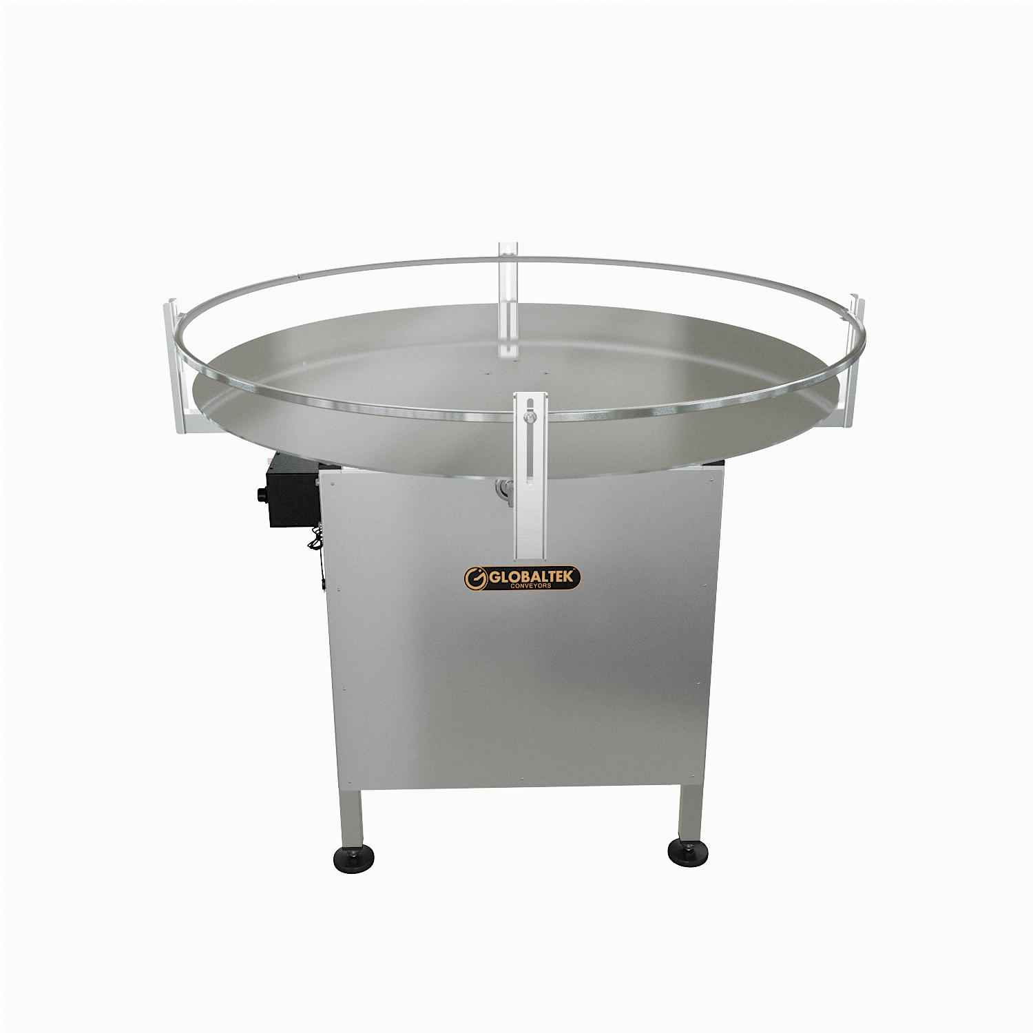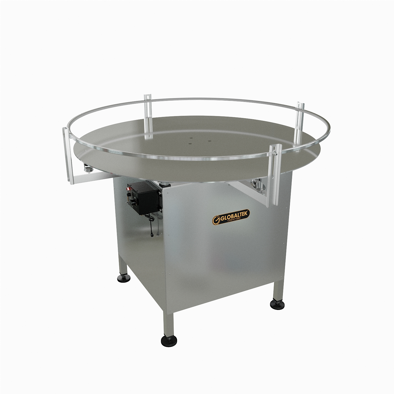 The GlobalTek® rotary tables can be used to unscramble product and feed a conveyor, also as a buffer space to accumulate product until the downstream conveyor is ready for additional product or collect. Accumulating rotary tables are designed to collect filled containers from a filling line to prevent slowdowns by quickly removing the finished product from the conveyors during operation. Can be set for clockwise and counterclockwise rotation. Accumulating rotary tables are designed to collect filled containers from a filling line to prevent slowdowns by quickly removing the finished product from the conveyors during operation. Can be set for clockwise and counterclockwise rotation.