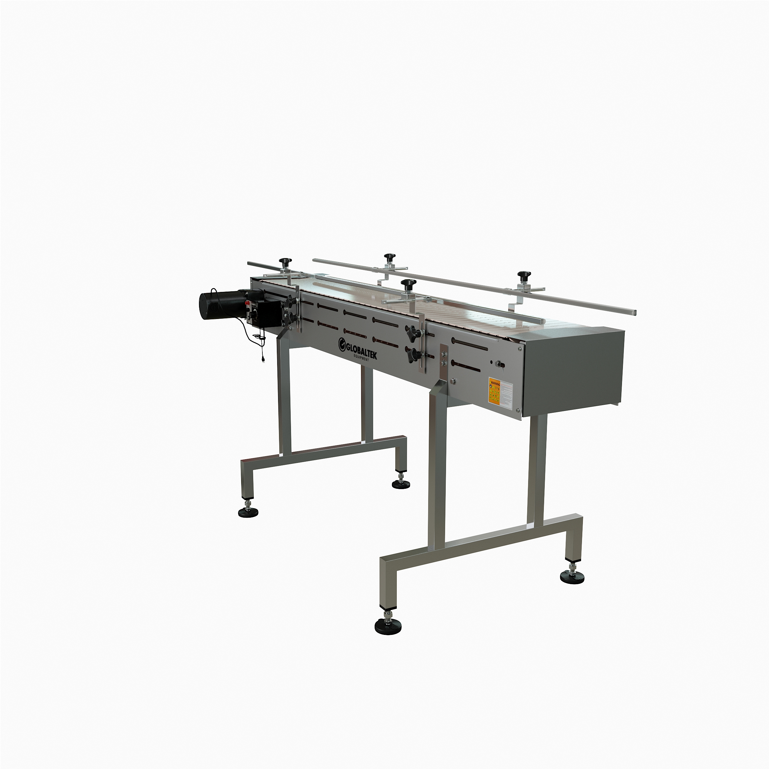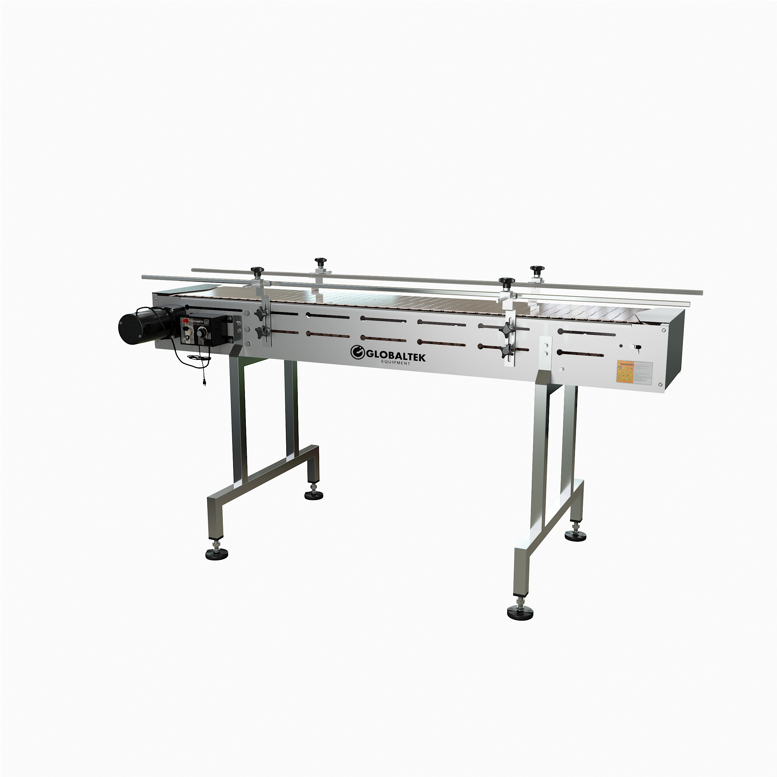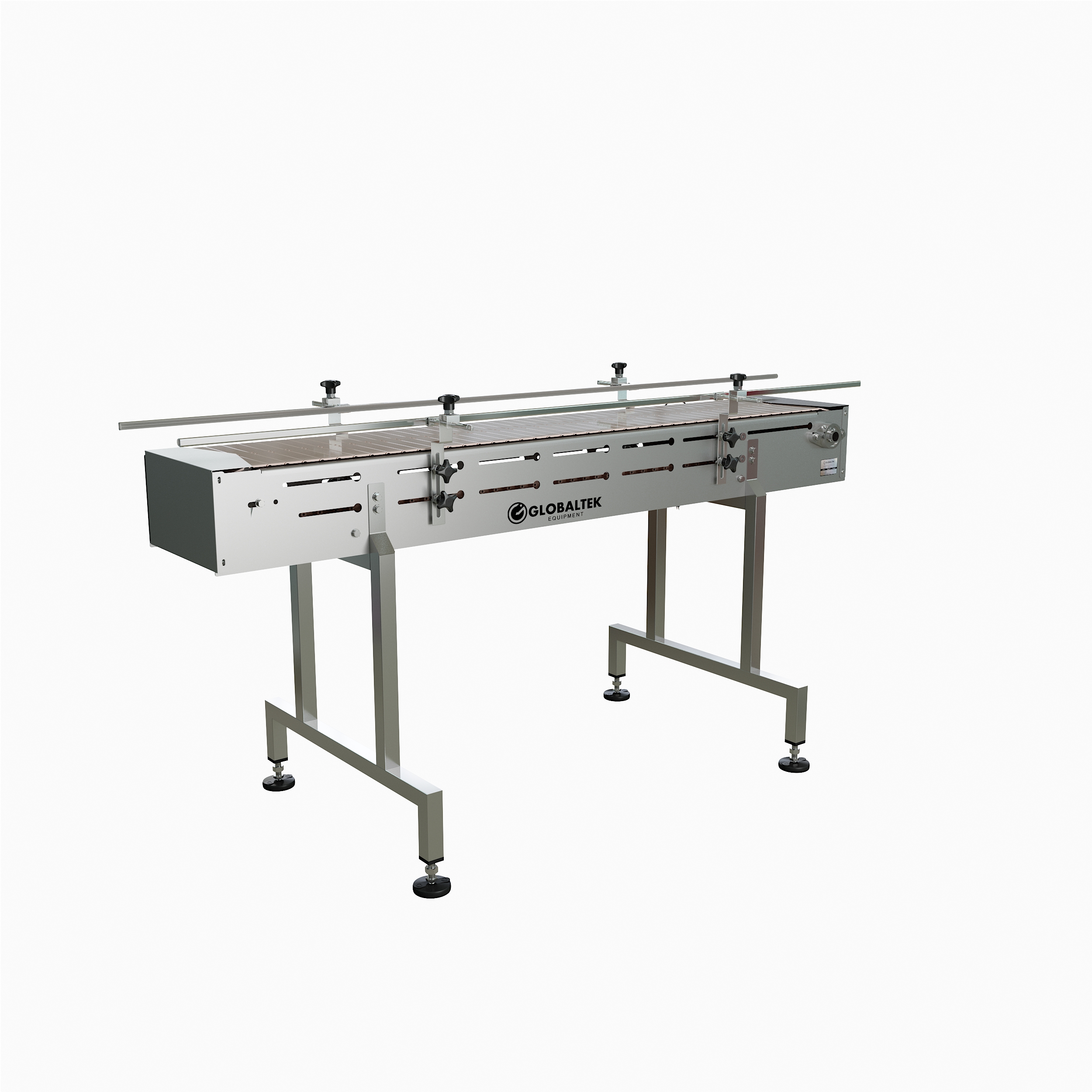 GlobalTek® offers a variety of inline conveyor systems that can be configured specifically for your floor plan. Our unique compact design allows the conveyor to be placed in a production line to move containers a specific distance effectively and efficiently. All of our conveyors feature 304 stainless steel construction, a Made in the USA Bodine motor and variable speed control.