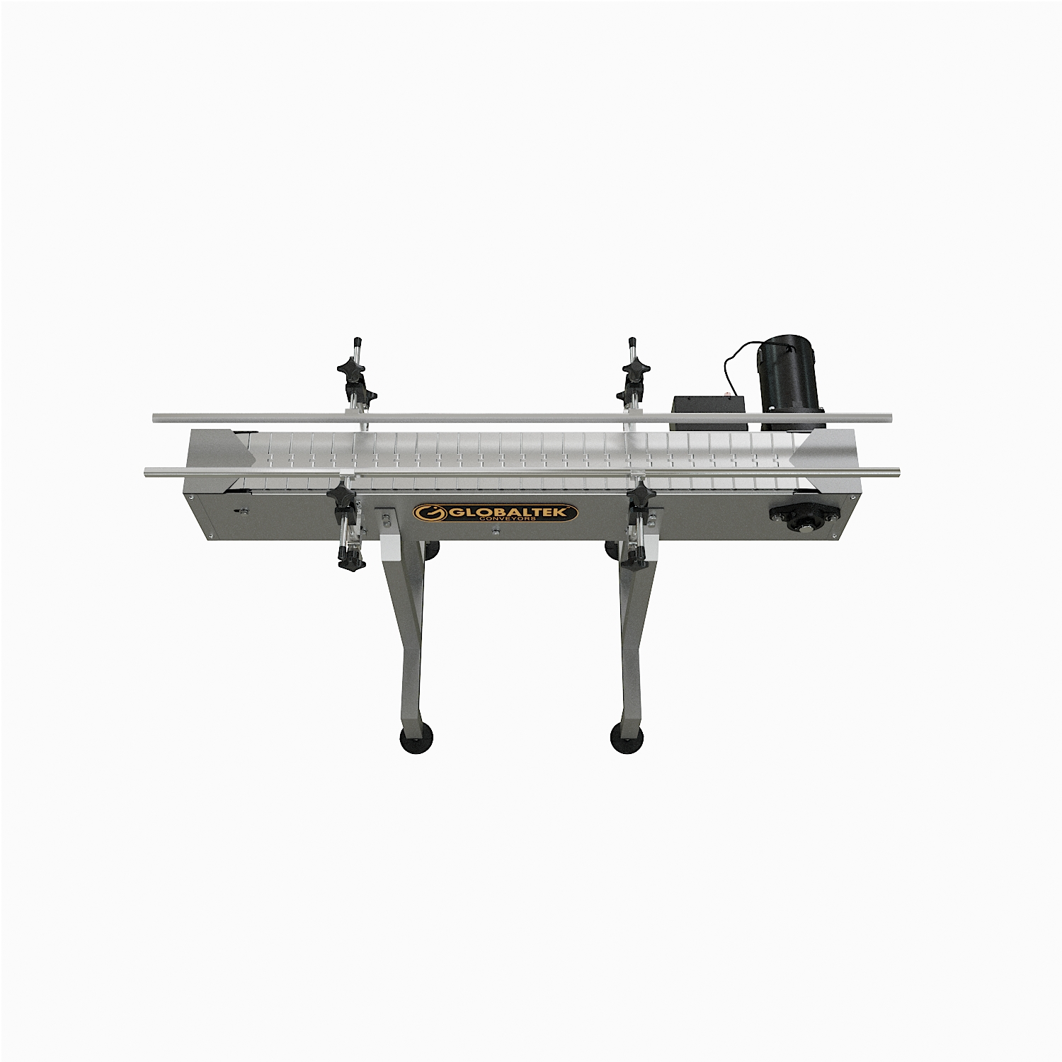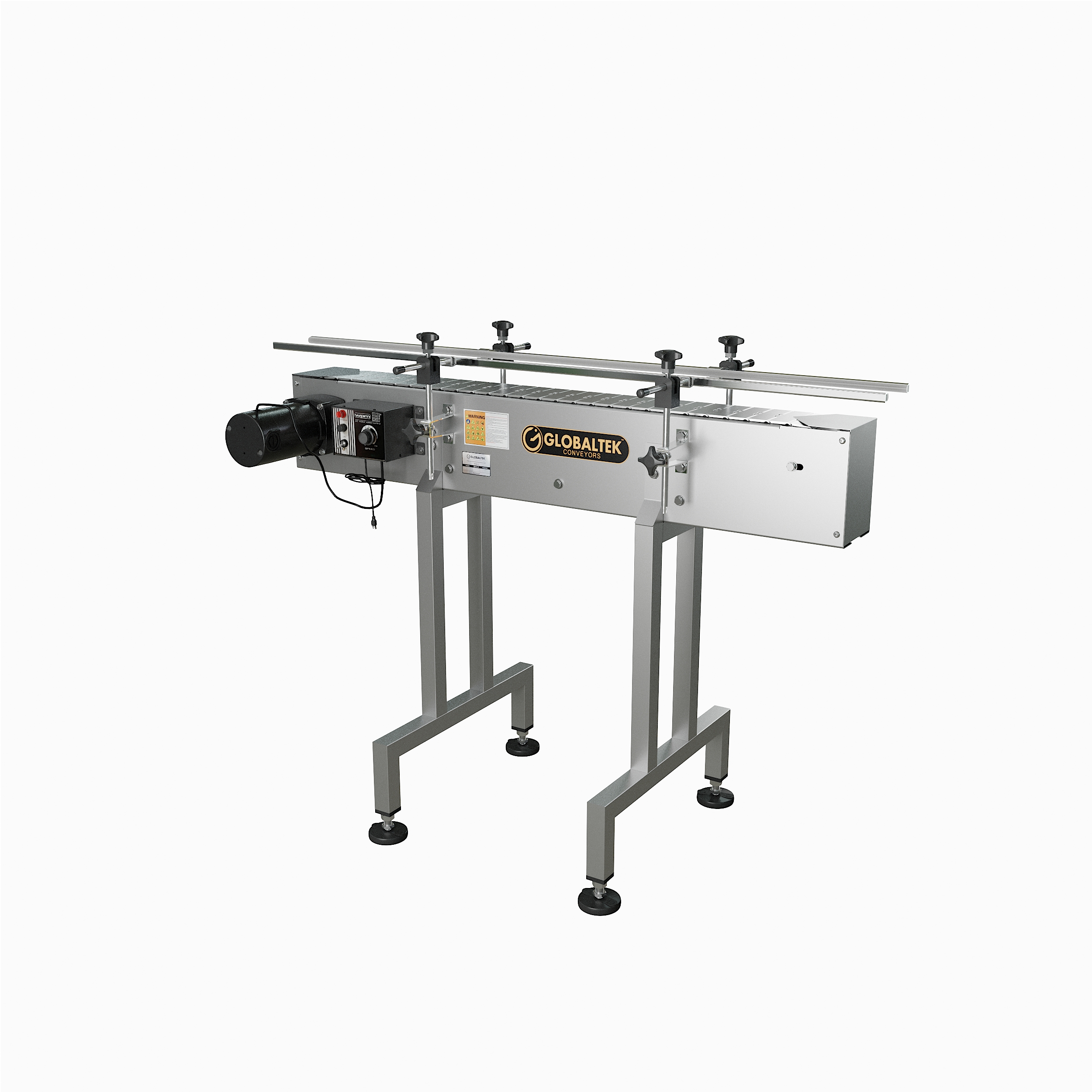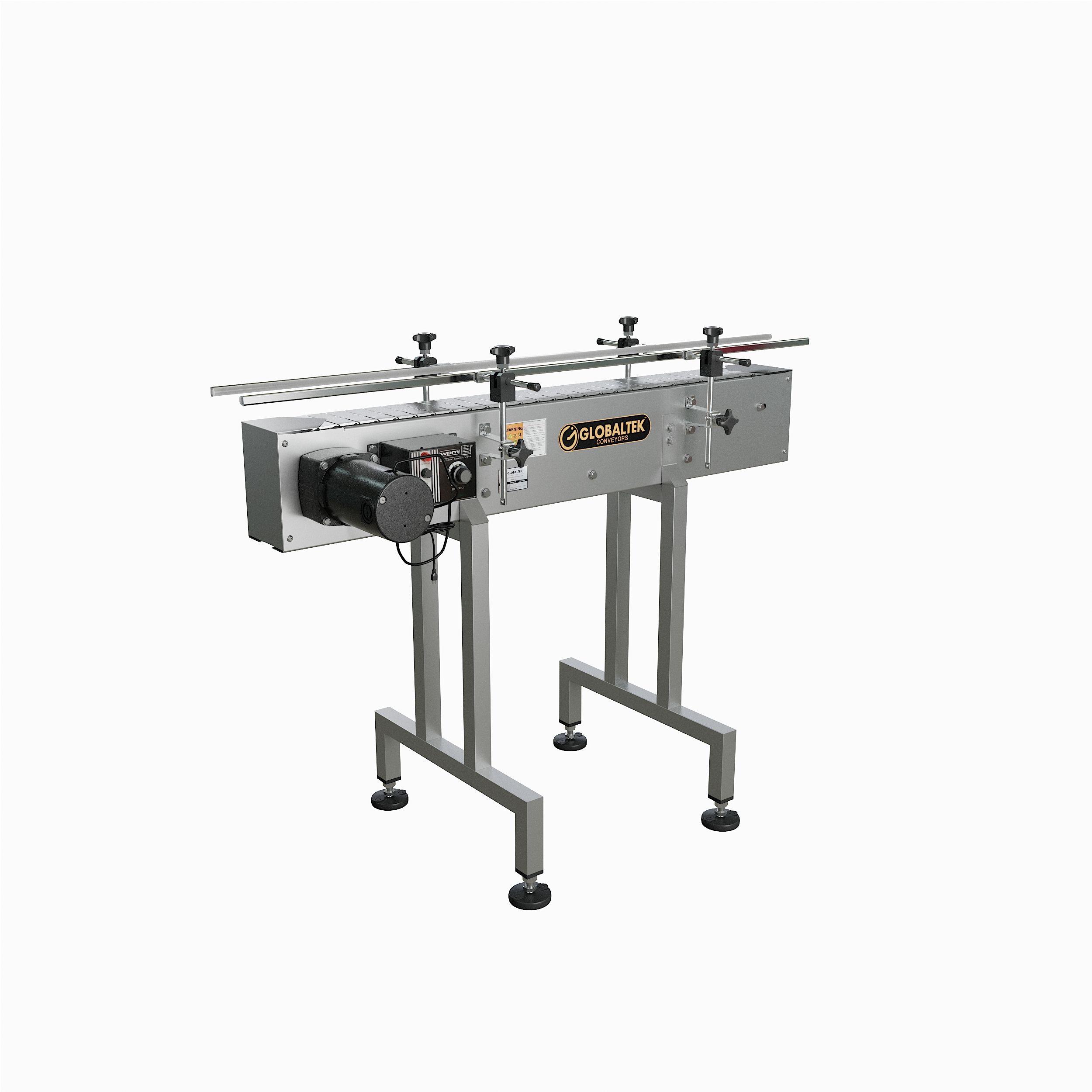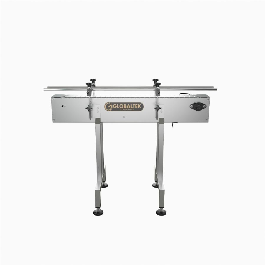 GlobalTek® offers a variety of inline conveyor systems that can be configured specifically for your floor plan. Our unique compact design allows the conveyor to be placed in a production line to move containers a specific distance effectively and efficiently. All of our conveyors feature 304 stainless steel construction, a Made in the USA Bodine motor and variable speed control.