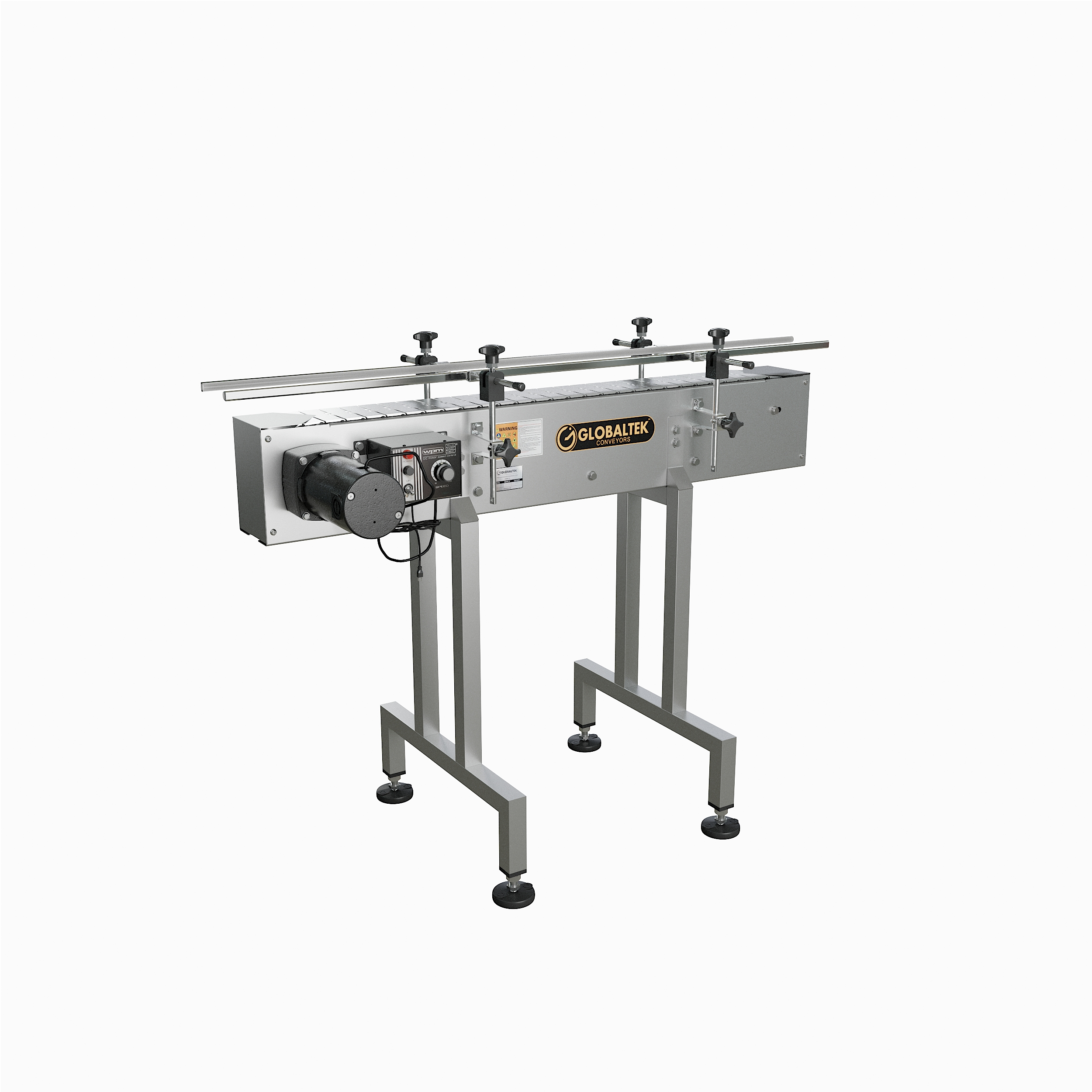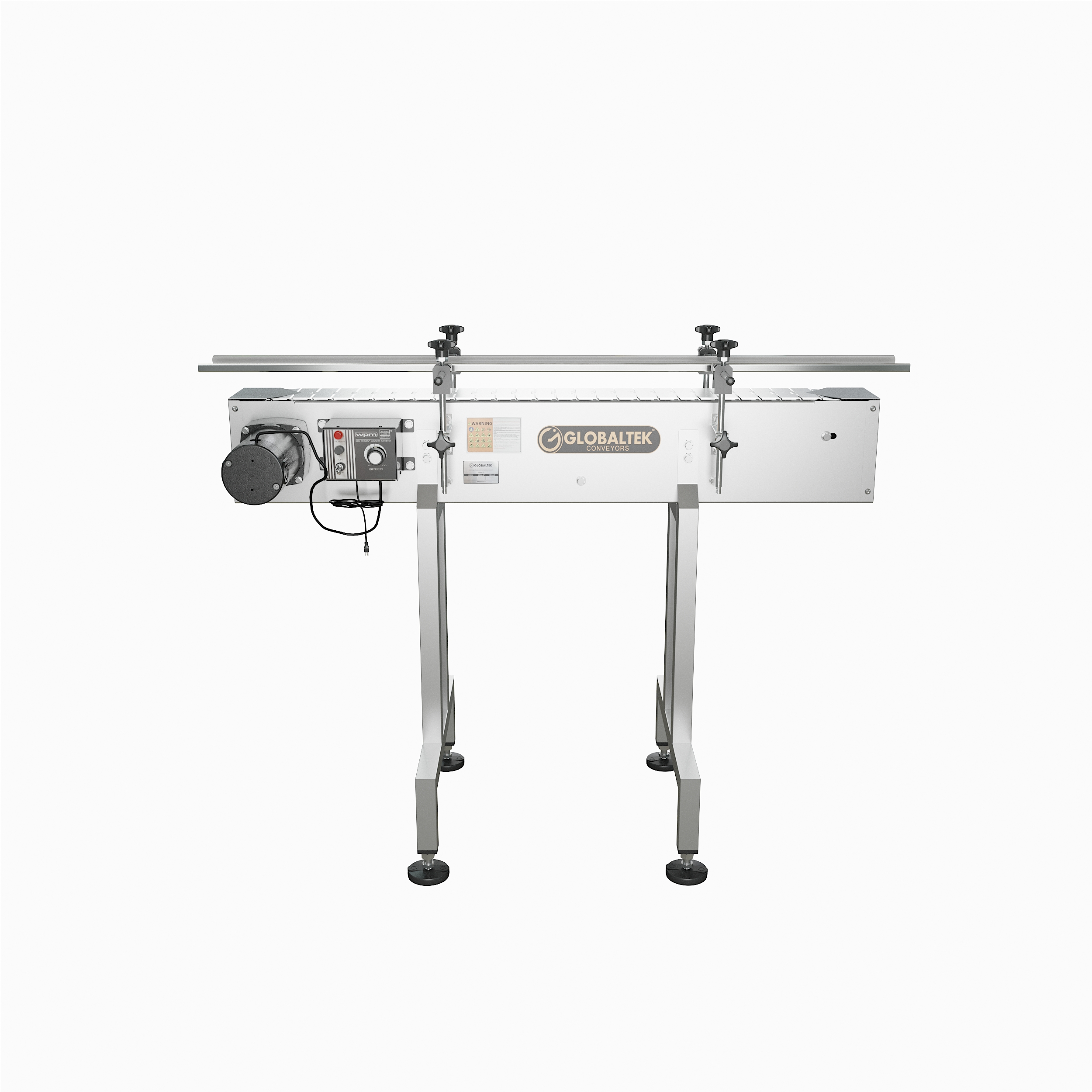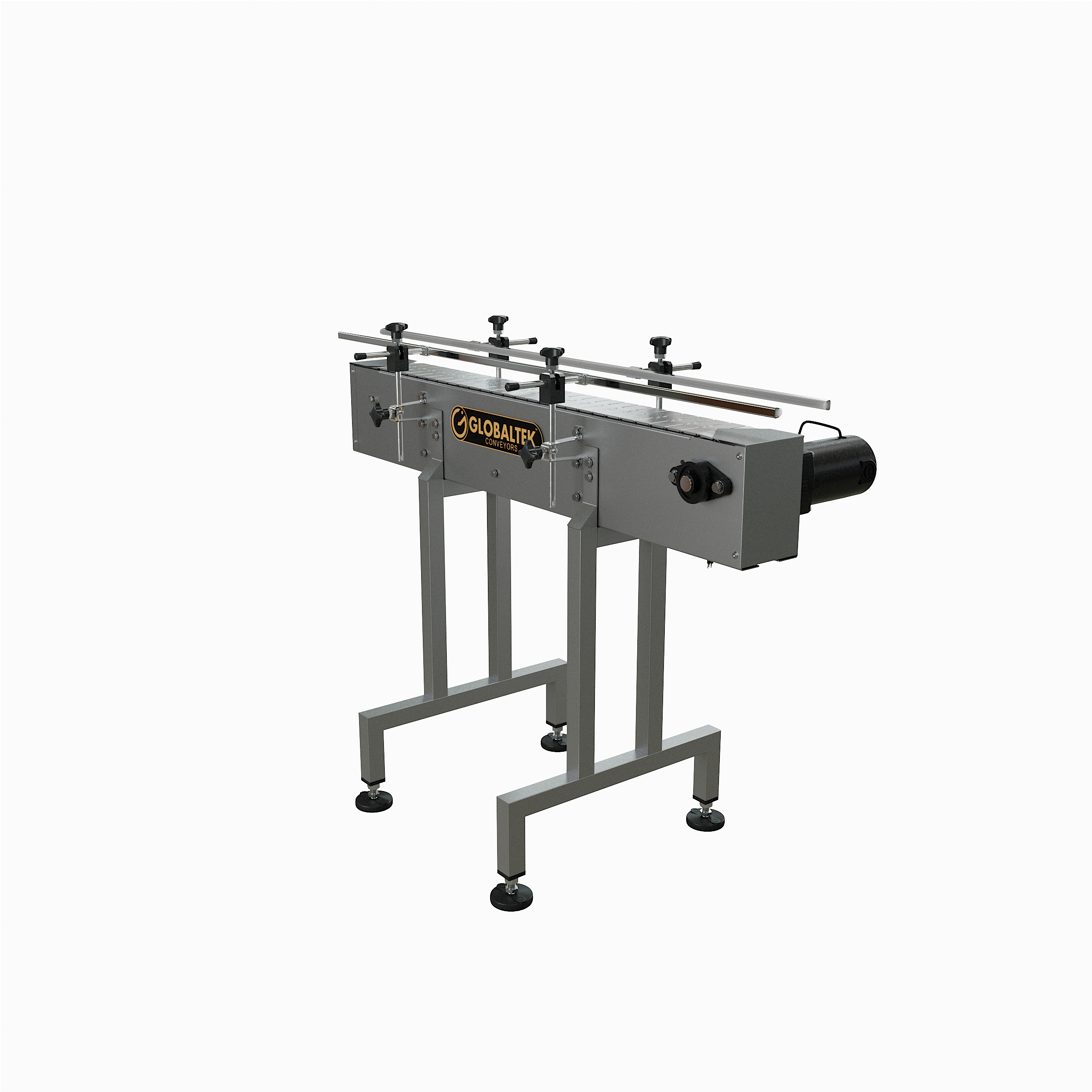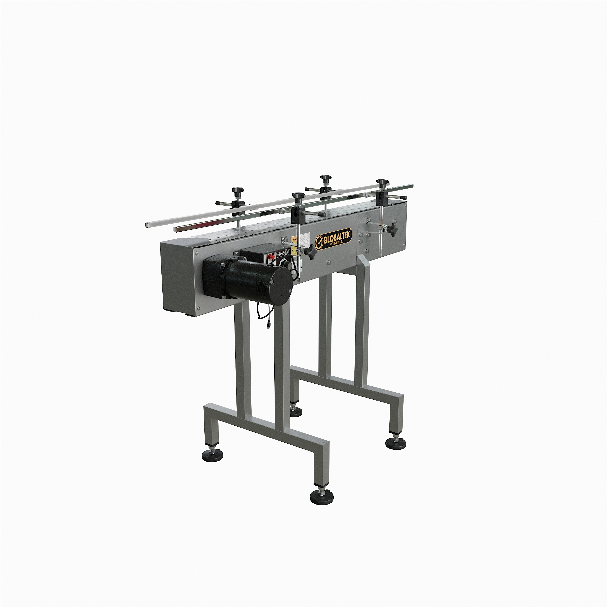 GlobalTek® offers a variety of inline conveyor systems that can be configured specifically for your floor plan. Our unique compact design allows the conveyor to be placed in a production line to move containers a specific distance effectively and efficiently. All of our conveyors feature 304 stainless steel construction, a Made in the USA Bodine motor and variable speed control.