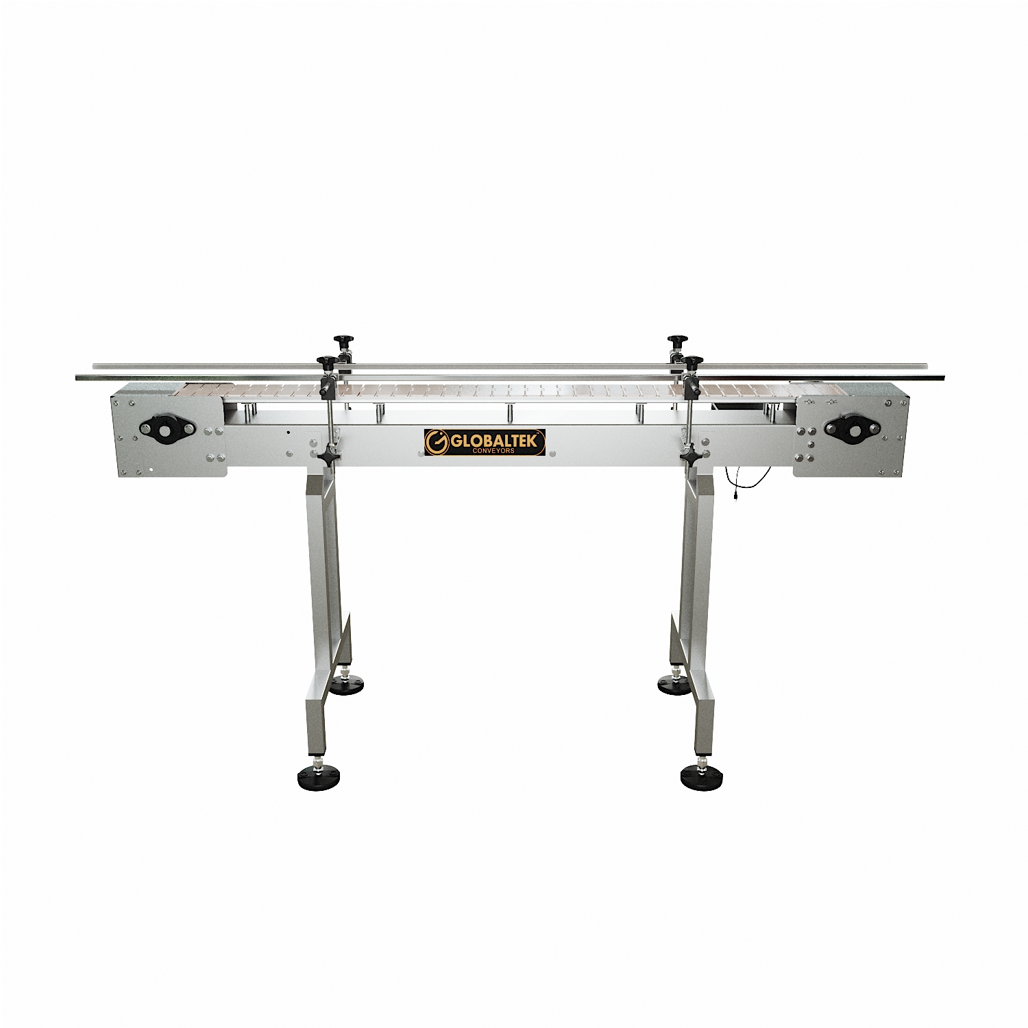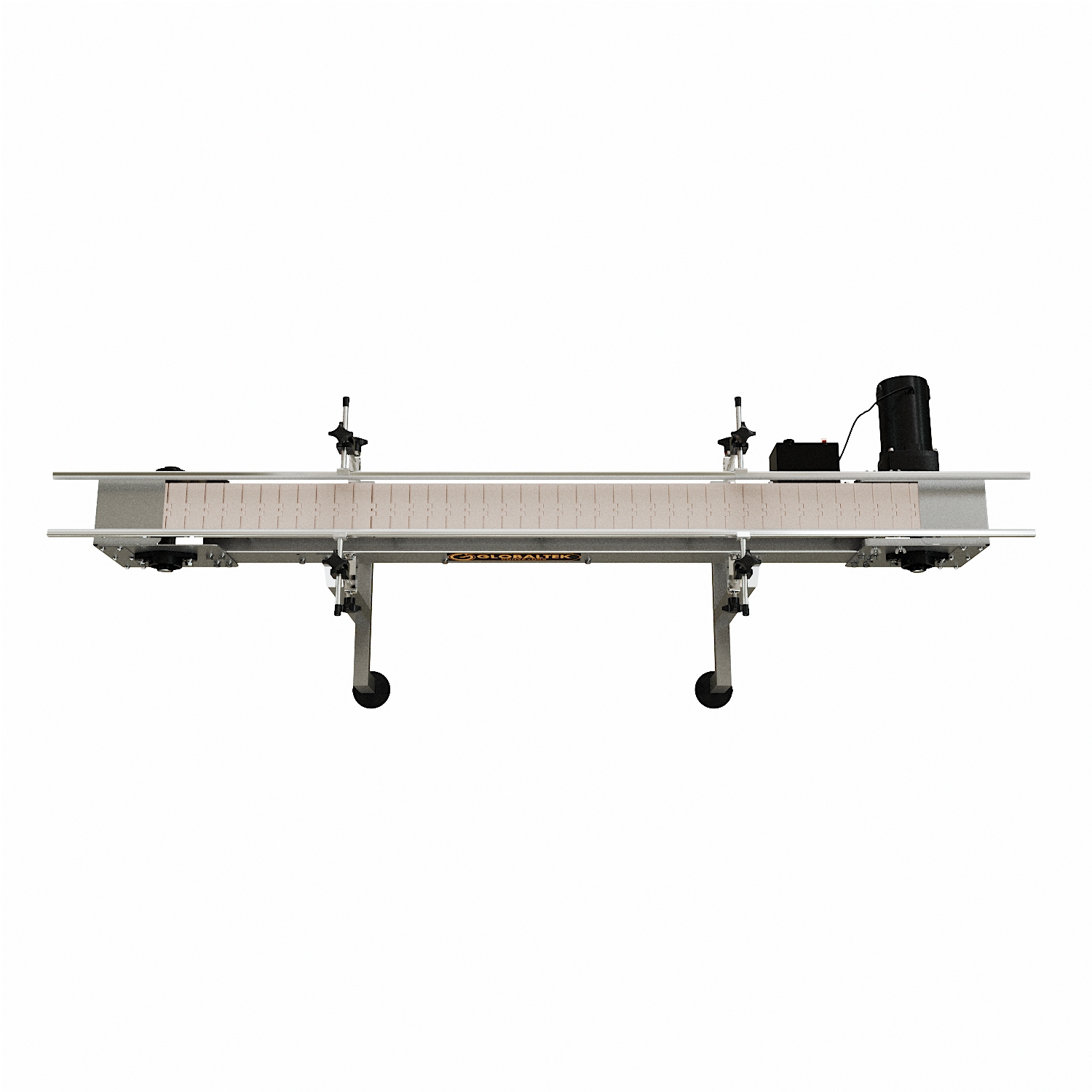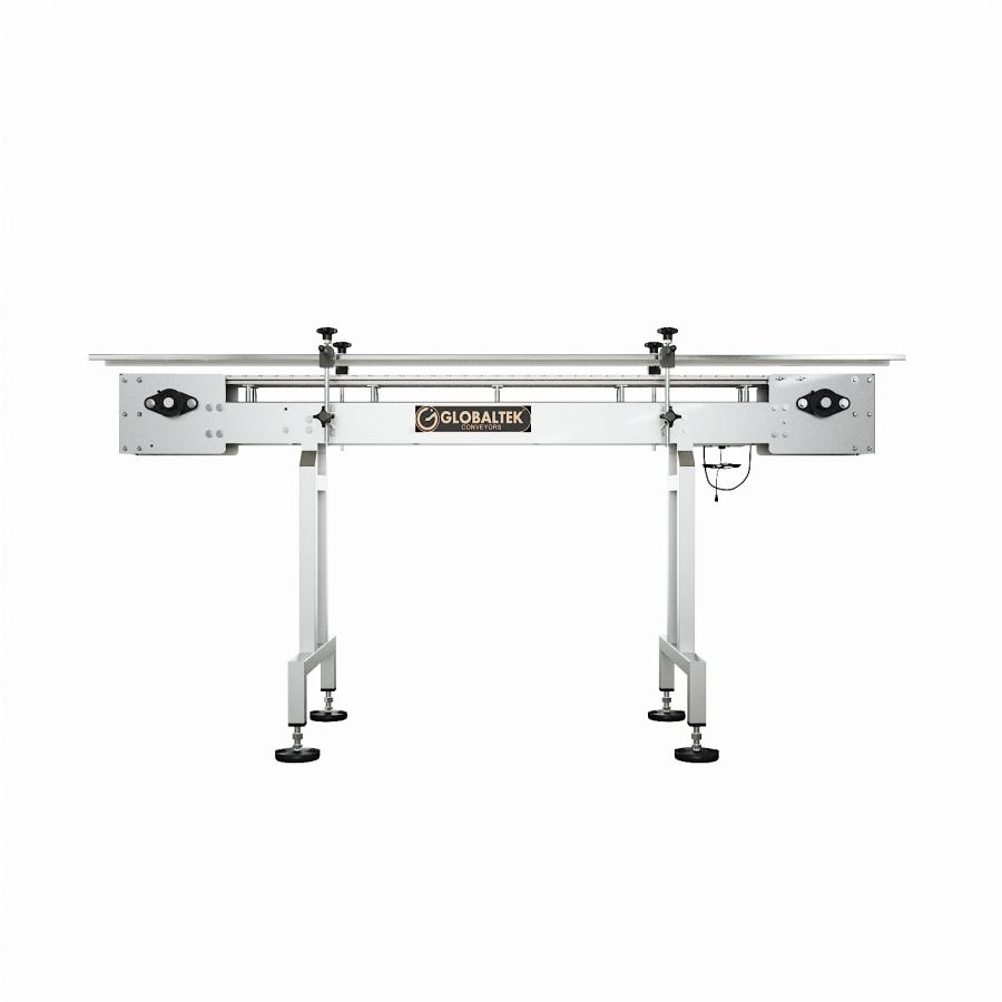 The GlobalTek® Raised Bed Sanitary Conveyor is intended to minimize chances of bacteria growth due to spilled product on conveying line. In order to achieve this, this conveyor features a raised table top plastic belt to avoid buildup of unwanted debris underneath the belt. This will allow for ease wipe down when maintenance and sanitation are required without any disassembly needed.