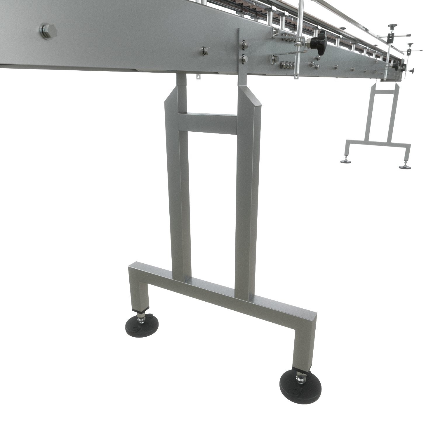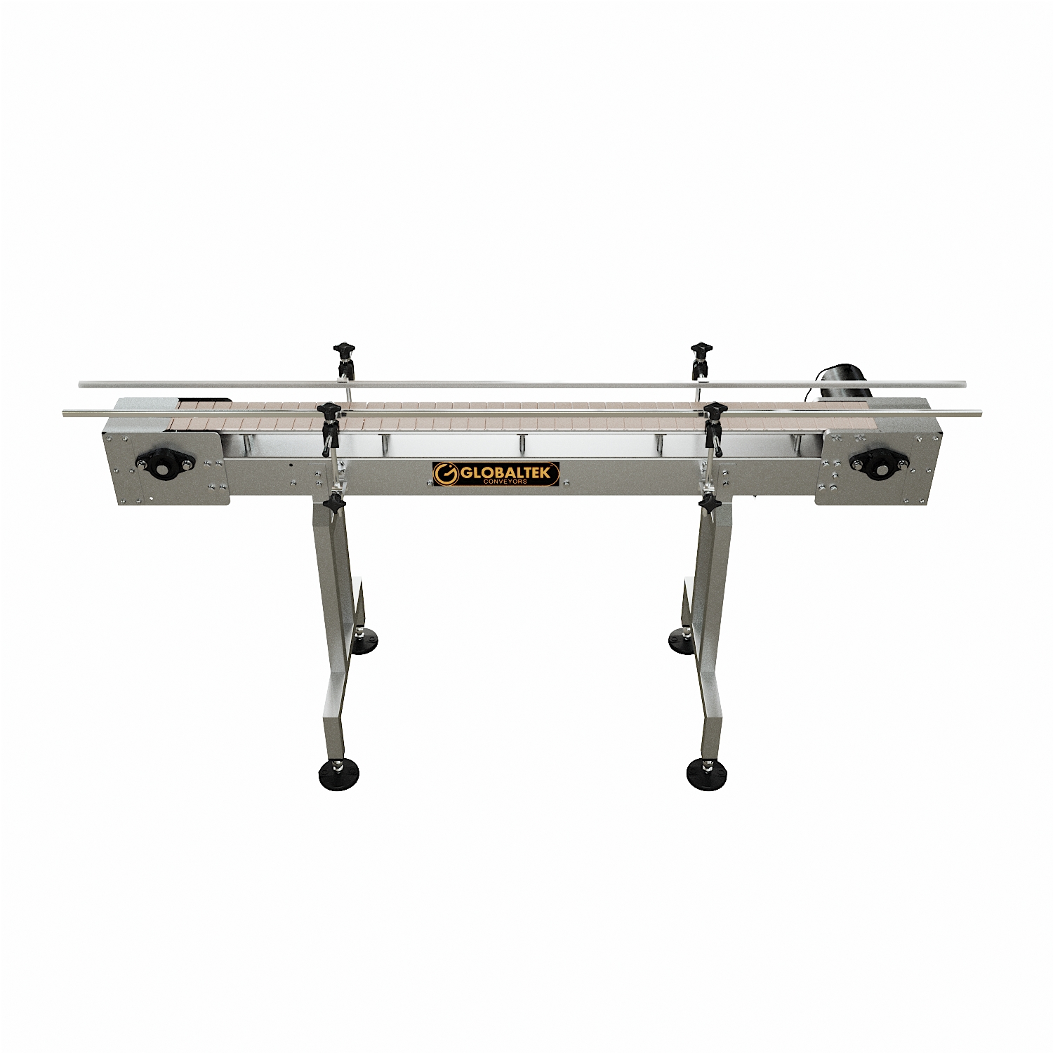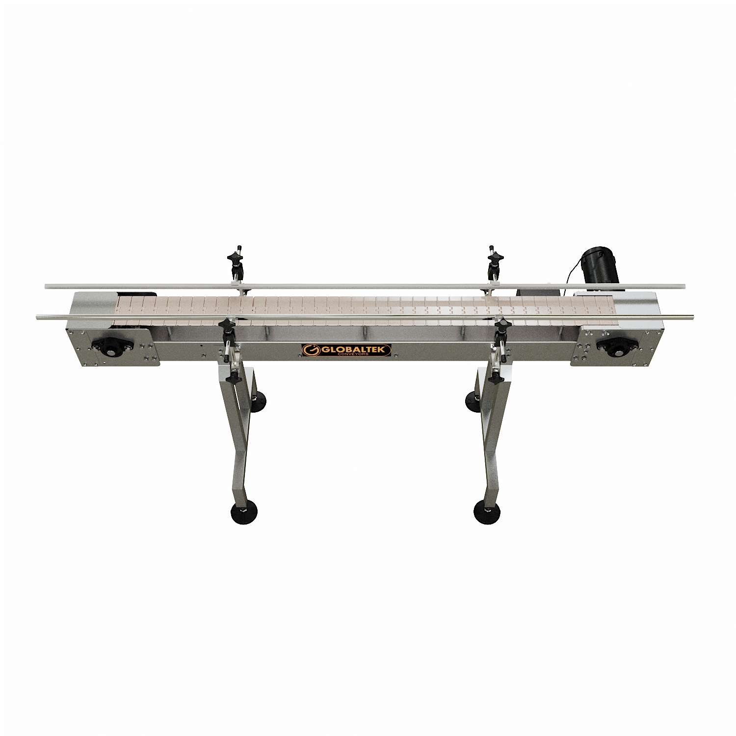 The GlobalTek® Raised Bed Sanitary Conveyor is intended to minimize chances of bacteria growth due to spilled product on conveying line. In order to achieve this, this conveyor features a raised table top plastic belt to avoid buildup of unwanted debris underneath the belt. This will allow for ease wipe down when maintenance and sanitation are required without any disassembly needed.